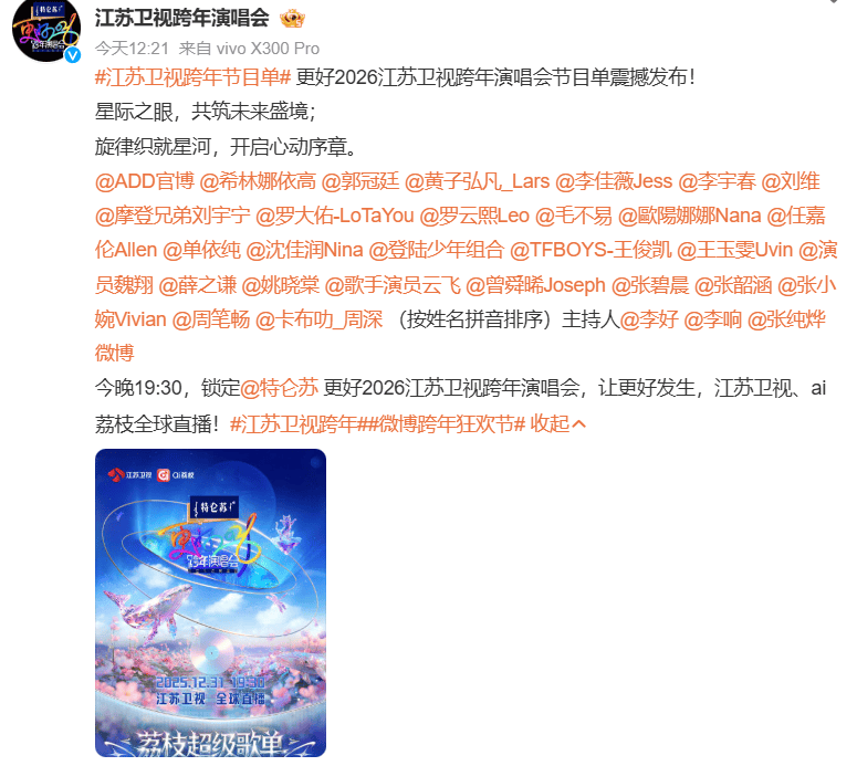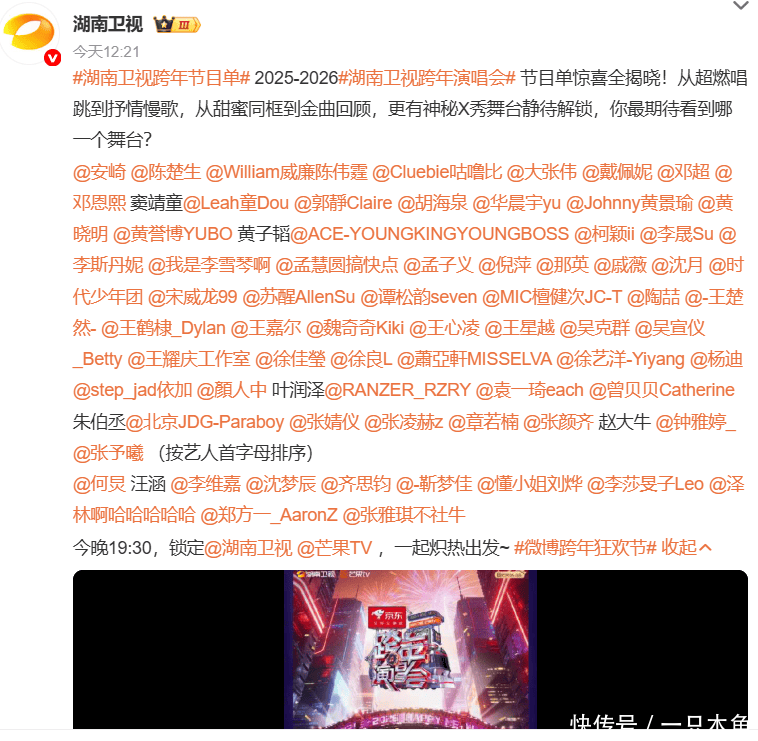六台跨年晚会:湖南卫视东谈主多争议大,江苏真唱景象多,上海最佳看